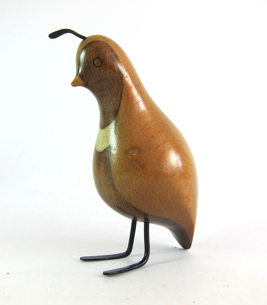 Found this cute lil mid century guy recently. Reminds me of the Partridge Family! He has oxidized legs and little feather on its head with carved eye. I originally thought the body was inlaid but it seems that it was artfully stained in sections.